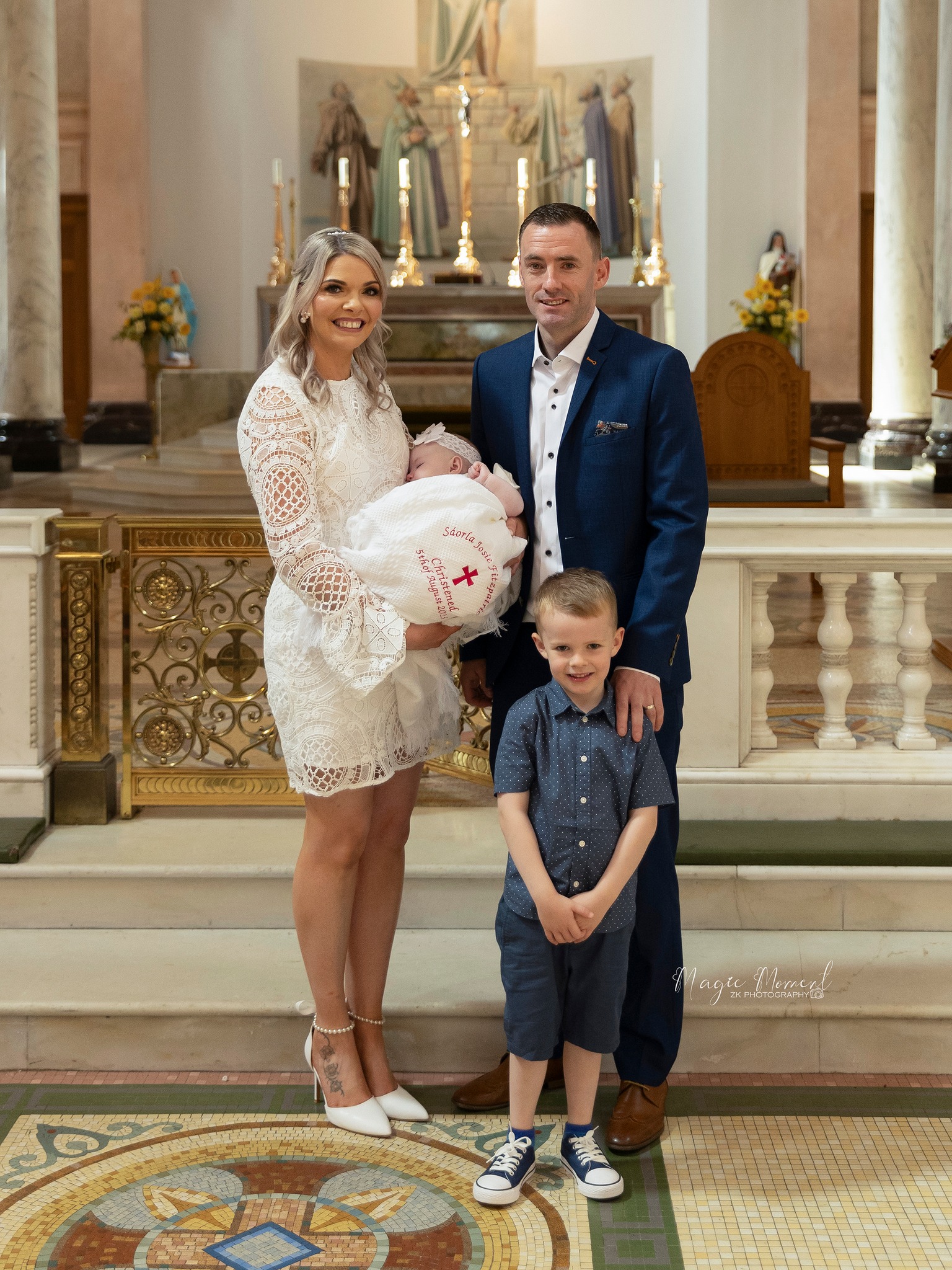 Once the ceremony is over, we’ll take a few posed photos with immediate family — parents, siblings, grandparents, and godparents. These can be done just outside the church or in a quiet corner inside if time and space allow.