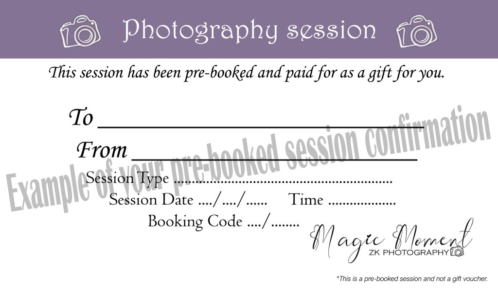 Give someone special a beautifully pre-booked photography session, created just for them.